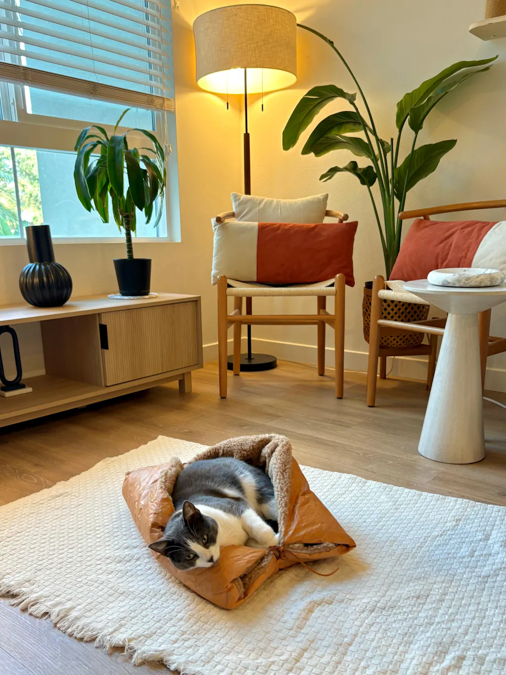 Neutral tones and a playful silhouette blend seamlessly into any space, doubling as a cozy retreat and a home accent.