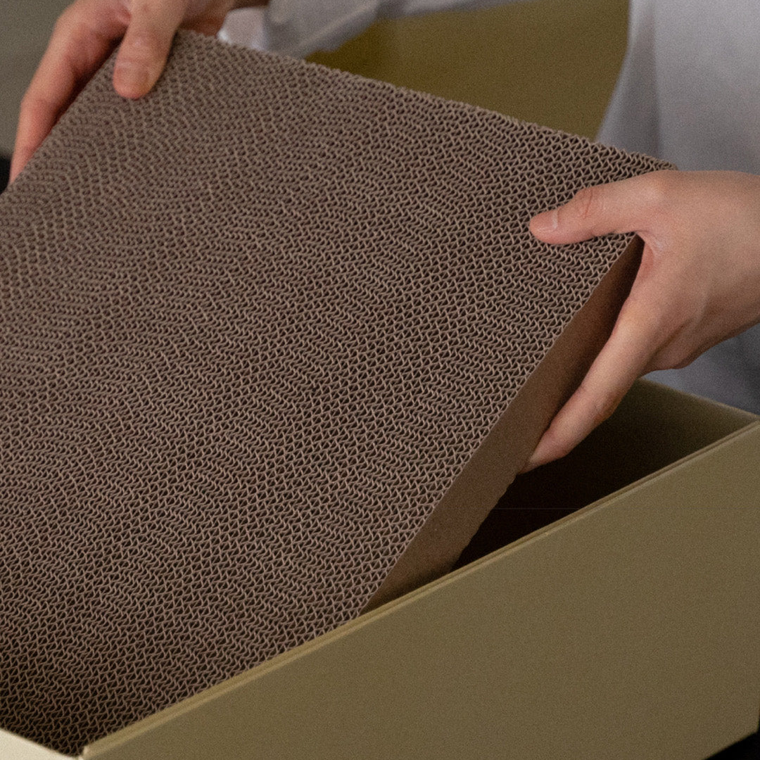 Constructed with reinforced thick paper that withstands vigorous scratching and lounging, offering semi-permanent durability unlike flimsy disposable scratchers.