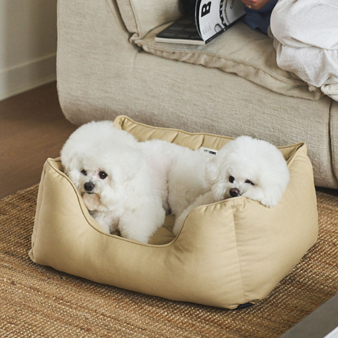 A soft, cushioned pet bed with optimal height for joint support, featuring a cozy muffin-shaped design that pets naturally love to nestle into.