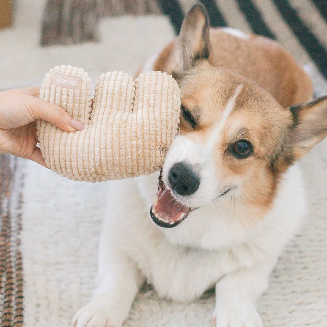 Double fun with squeaker and crinkle inside. A sculptural toy made for playful pups who love interaction.